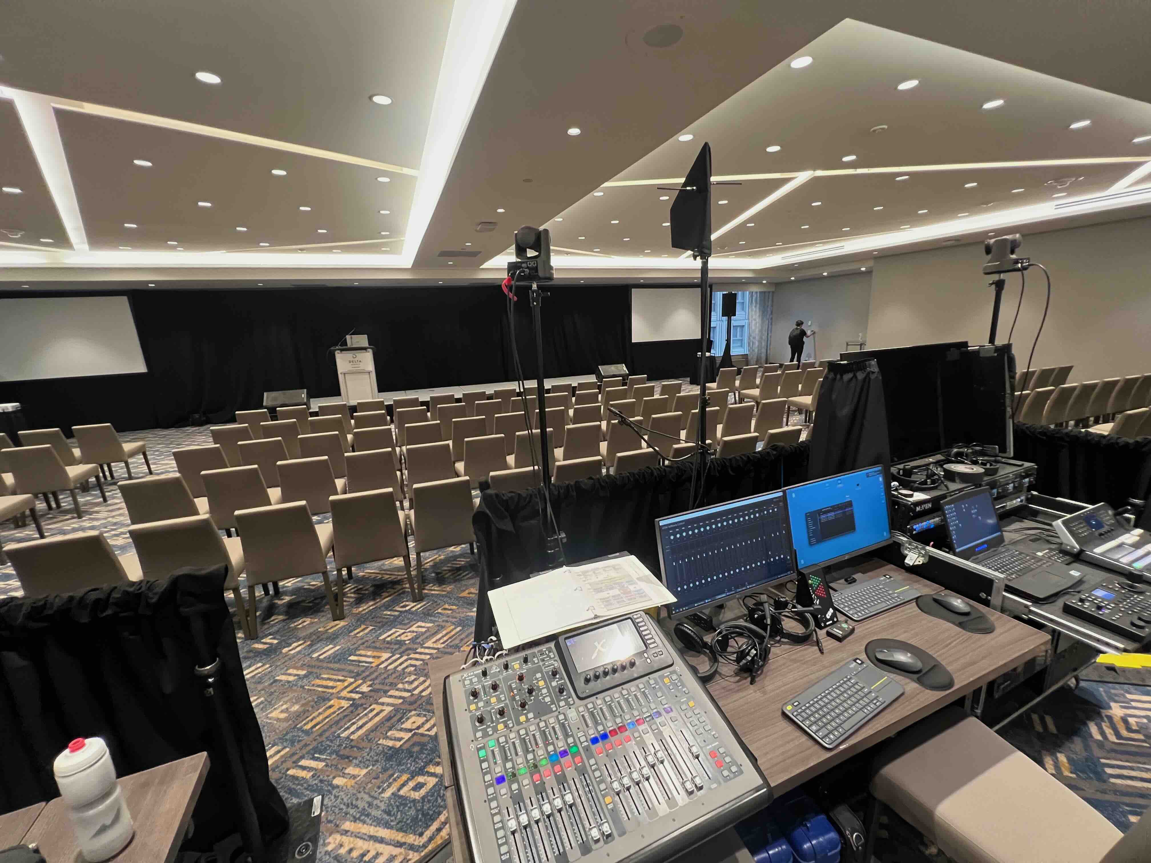 In the main plenary room, we deployed a robust setup including dual projector screens, comfort monitors, and a professional audio reinforcement system featuring a mix of stage and audience Q&A microphones. Our team managed technical planning and a custom streaming graphics package for the highlight of the summit: the awards gala. For this high-stakes session, we upgraded the production to a four-person crew, utilizing a specialized dual-PTZ camera workflow to broadcast the ceremony live. Additionally, we equipped three breakout rooms with independent presentation and sound systems to support the conference’s diverse slate of sessions, ensuring high-quality execution for every speaker.
