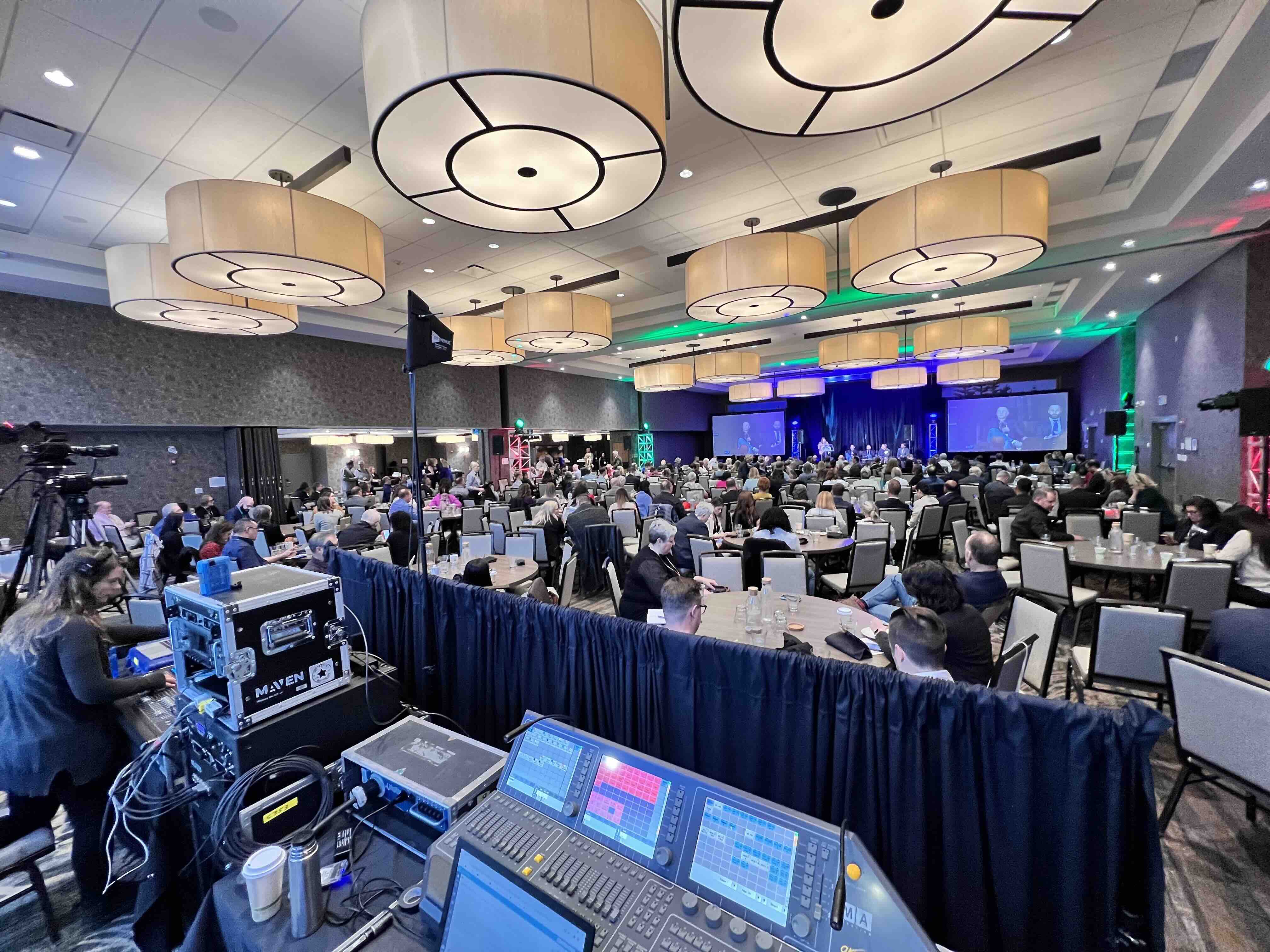 Maven has partnered with Economic Developers Alberta (EDA) to produce several annual conferences, including their landmark 50th-anniversary summit. This large-scale hybrid event required comprehensive A/V and broadcast support across five concurrent event rooms to engage both in-person attendees and a nationwide virtual audience.